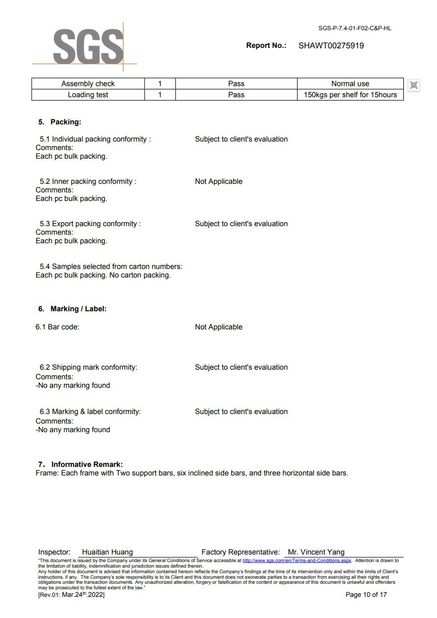 Ketika barang selesai produksi kami akan mengumpulkan satu atau dua produk untuk menguji kinerja mereka terutama dukungan bantalan beban memastikan hasil harus sesuai dengan persyaratan pelanggan yang ditunjukkan pada kontrak kami.